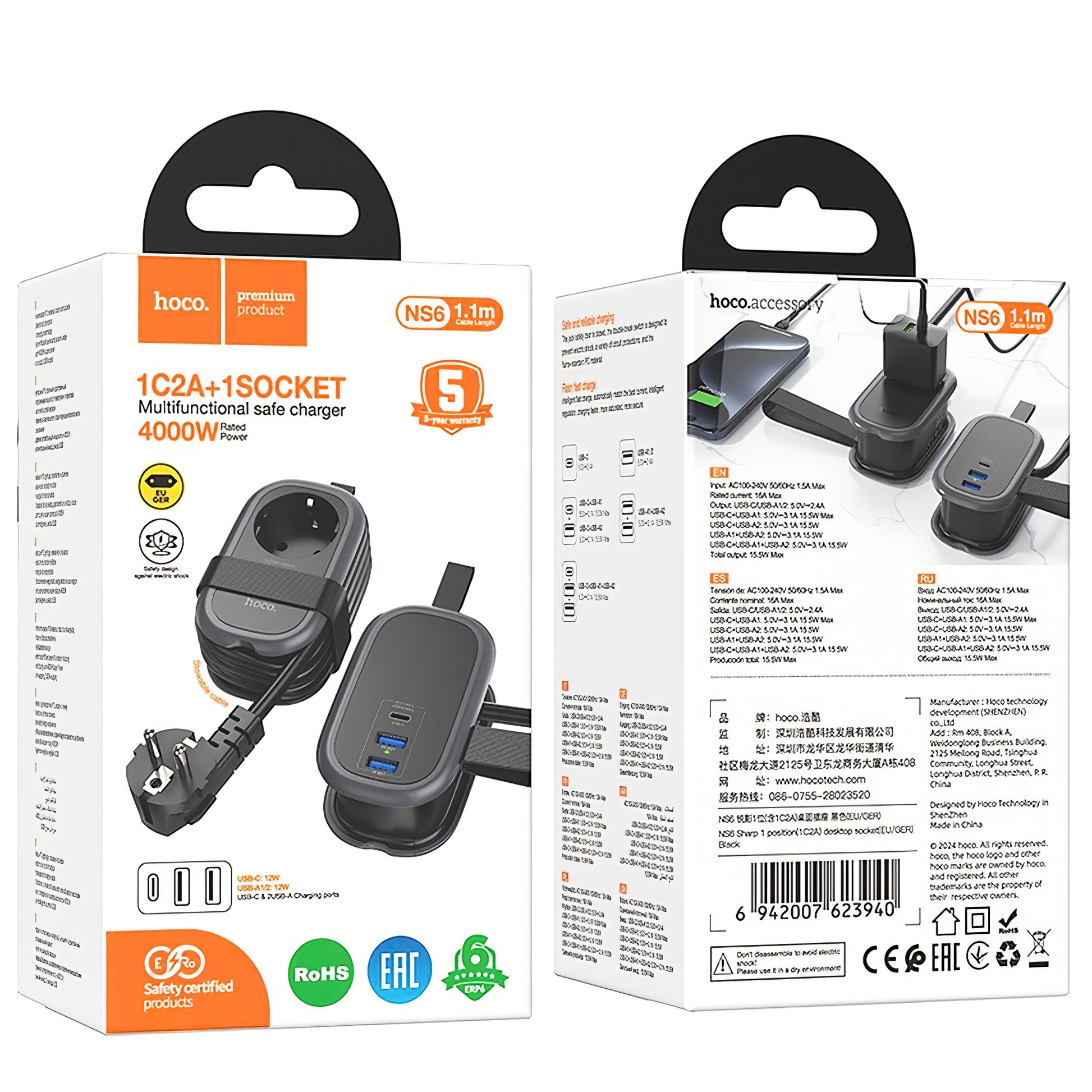 The HOCO NS6 extension cord is a powerful and versatile solution for powering your devices, with a capacity of up to 4000W.