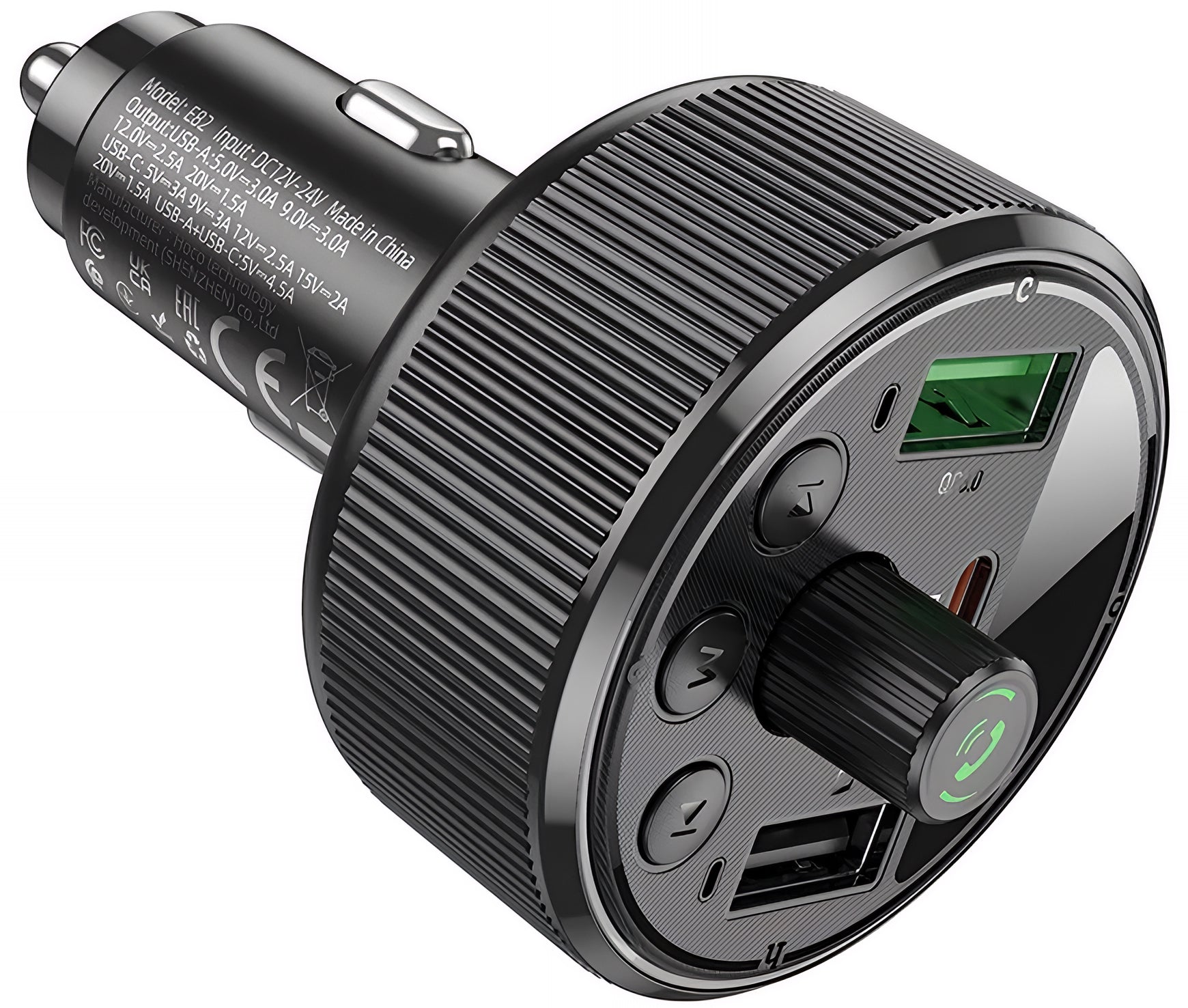 The HOCO E82 Bluetooth FM Modulator is a multifunctional car accessory, ideal for drivers who want fast charging and wireless audio playback in a