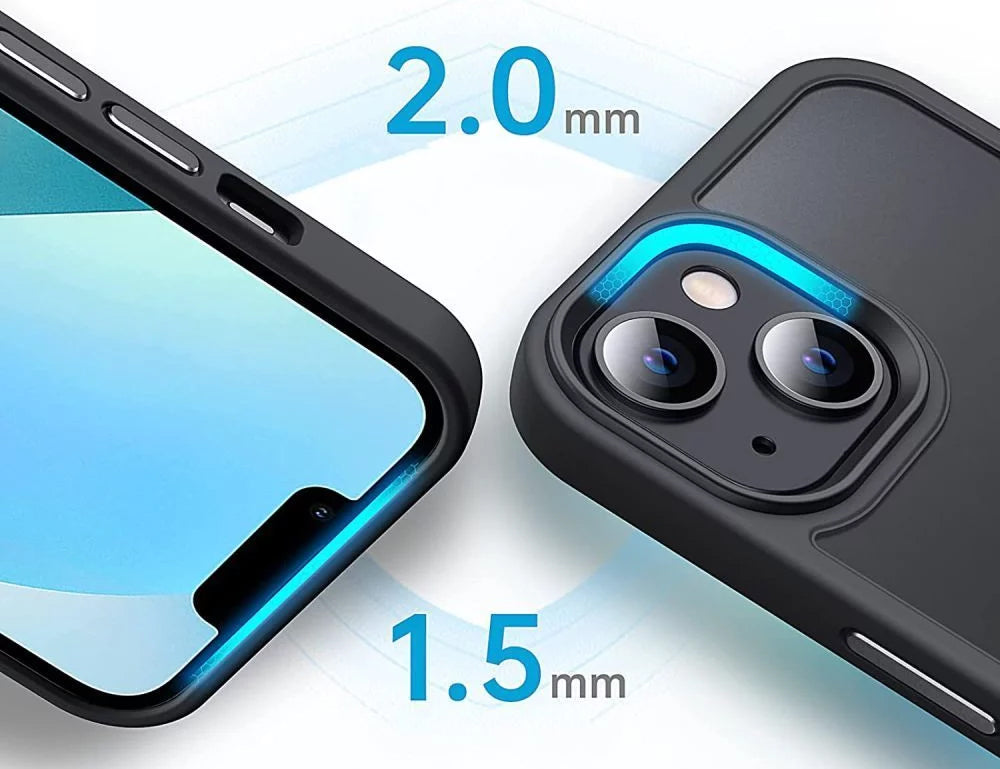 The slightly raised shape of the case around the camera and screen protects against damage by lifting the phone just above a flat surface.