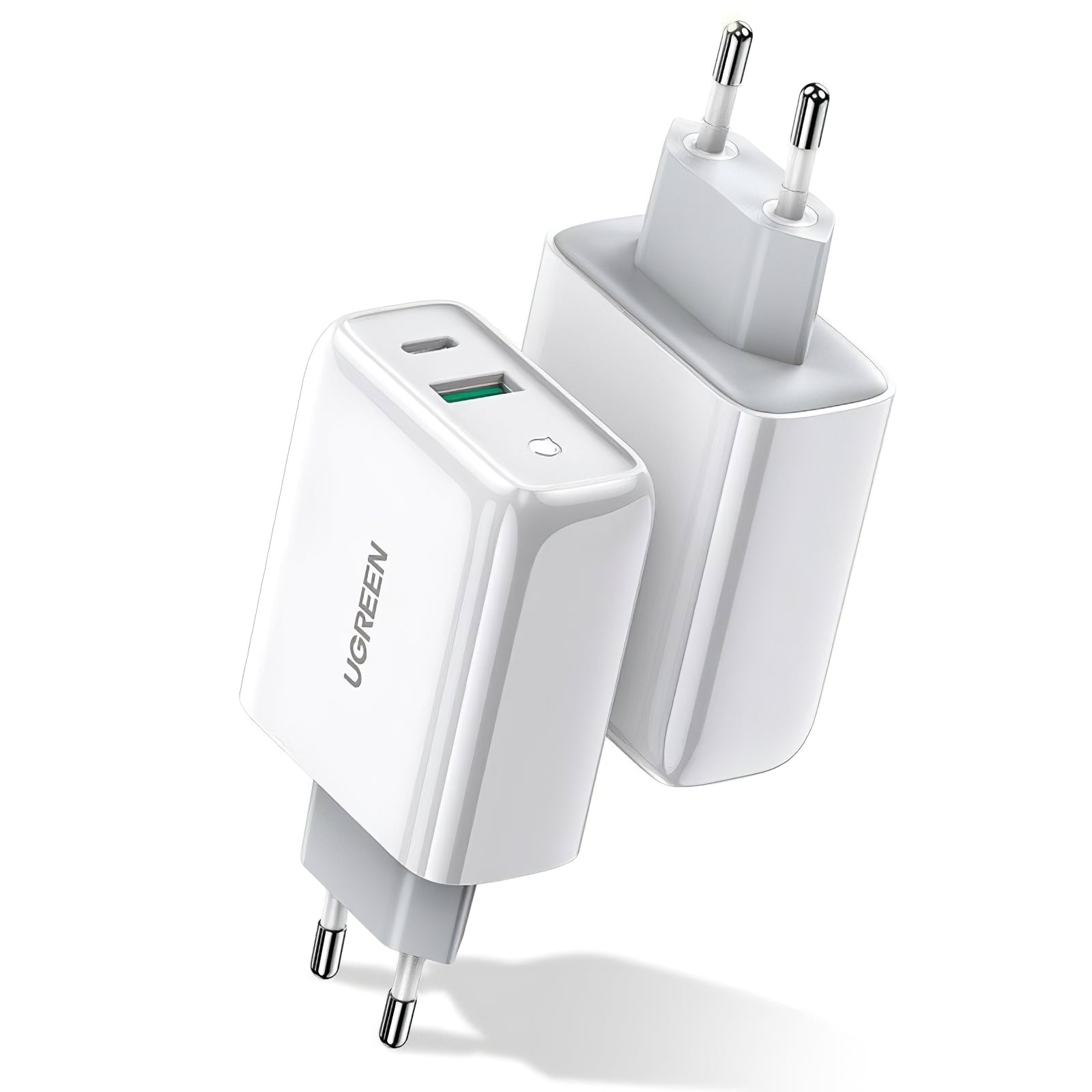 Network Charger UGREEN CD170, 36W, 3A, 1 x USB-A - 1 x USB-C, White