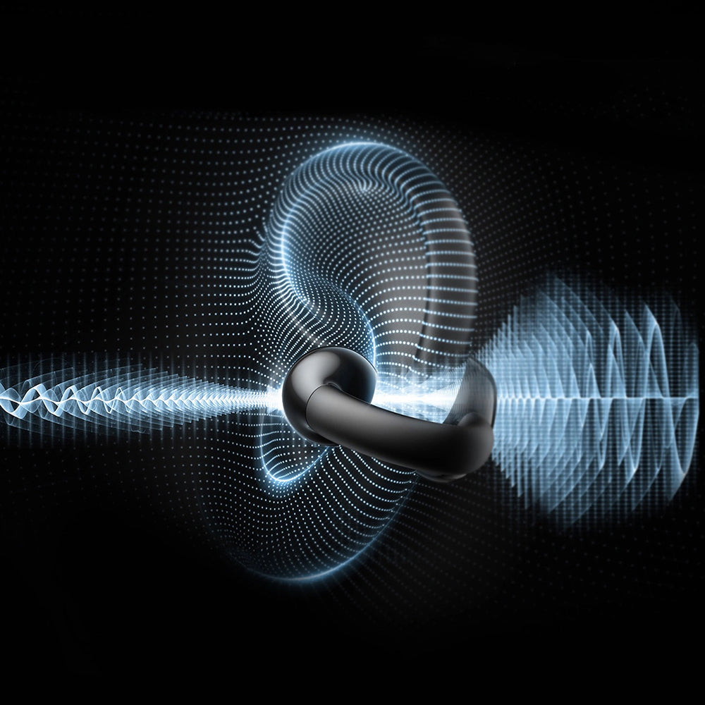 The open-ear design with lateral clips distributes pressure evenly around the ears, providing a "zero gravity" sensation