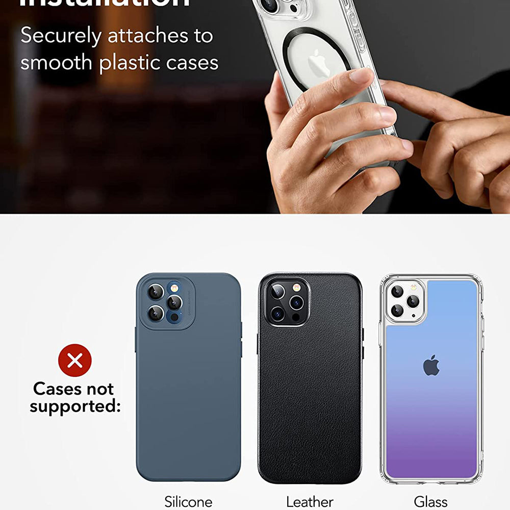 • Que vous possédiez un iPhone ou un Samsung, ce produit est fait pour vous. Transformez une coque ordinaire en une coque qui facilite la charge MagSafe. L'anneau avec des aimants puissants est merveilleux.