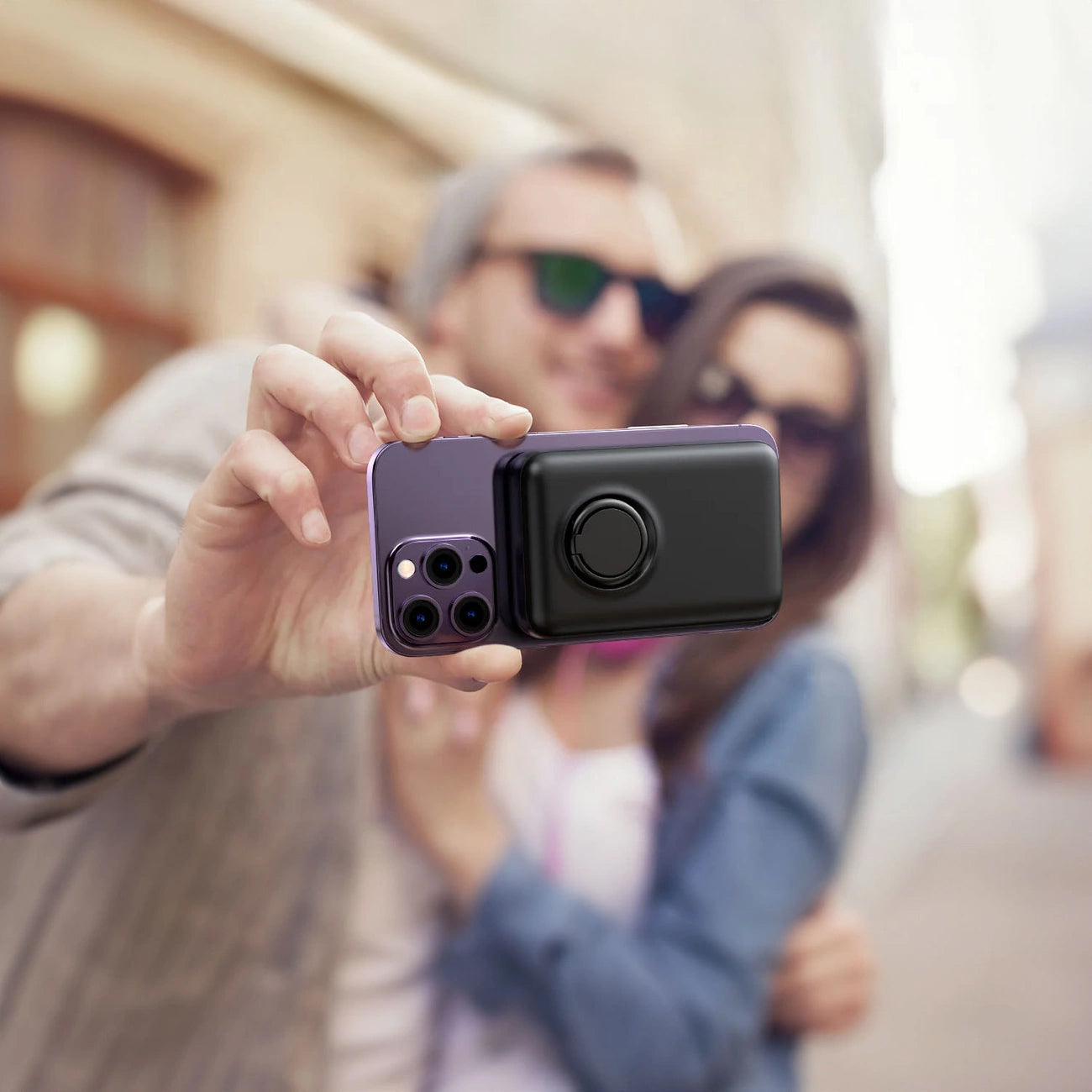 Cette solution 2-en-1 combine l'efficacité d'une batterie externe de 10 000 mAh avec la fonctionnalité d'un support ergonomique pour téléphone,