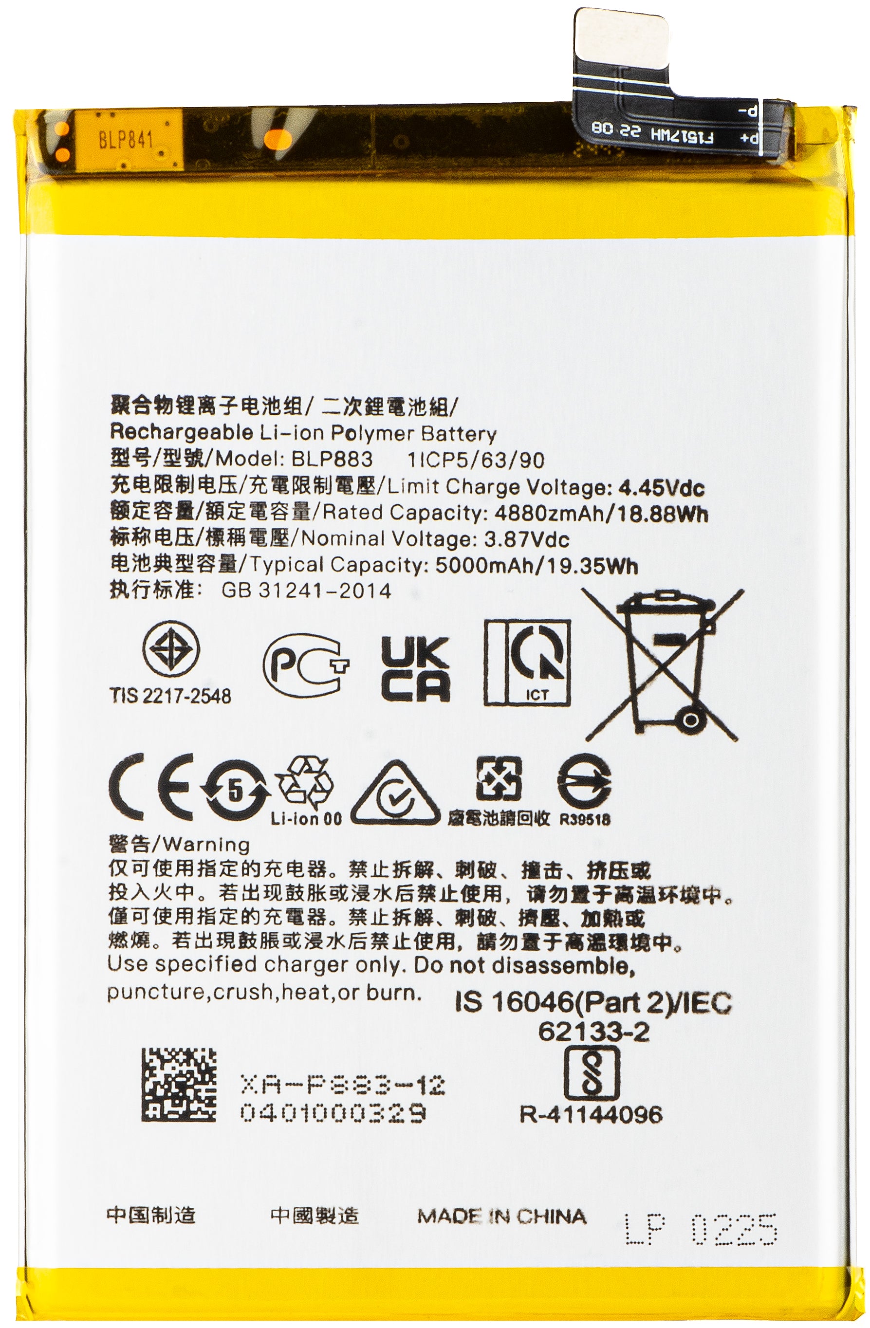 | Modèle d'accumulateur | BLP883 |