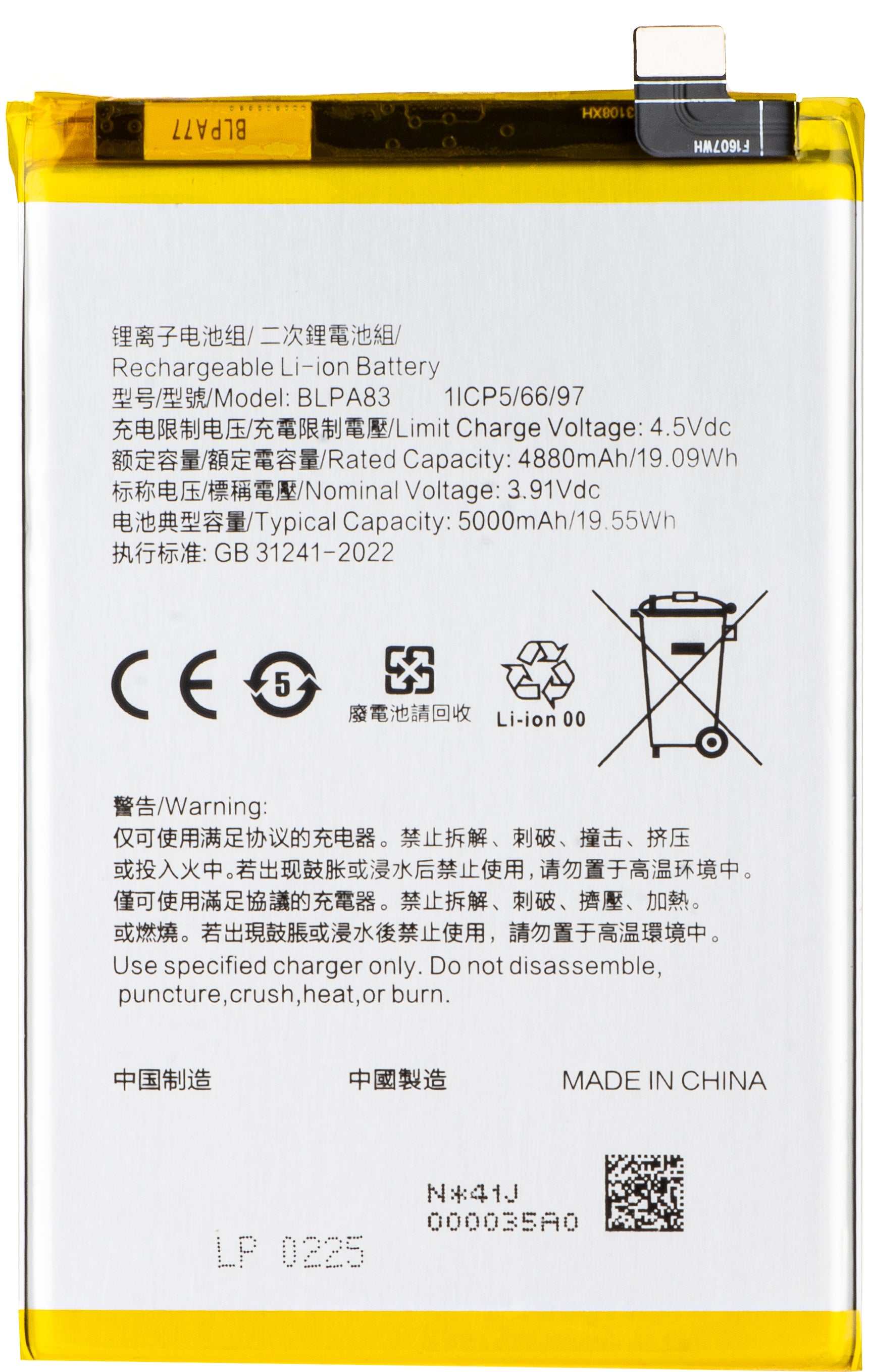 Batterie pour Realme C63 / C61 / 10 Pro, BLPA83