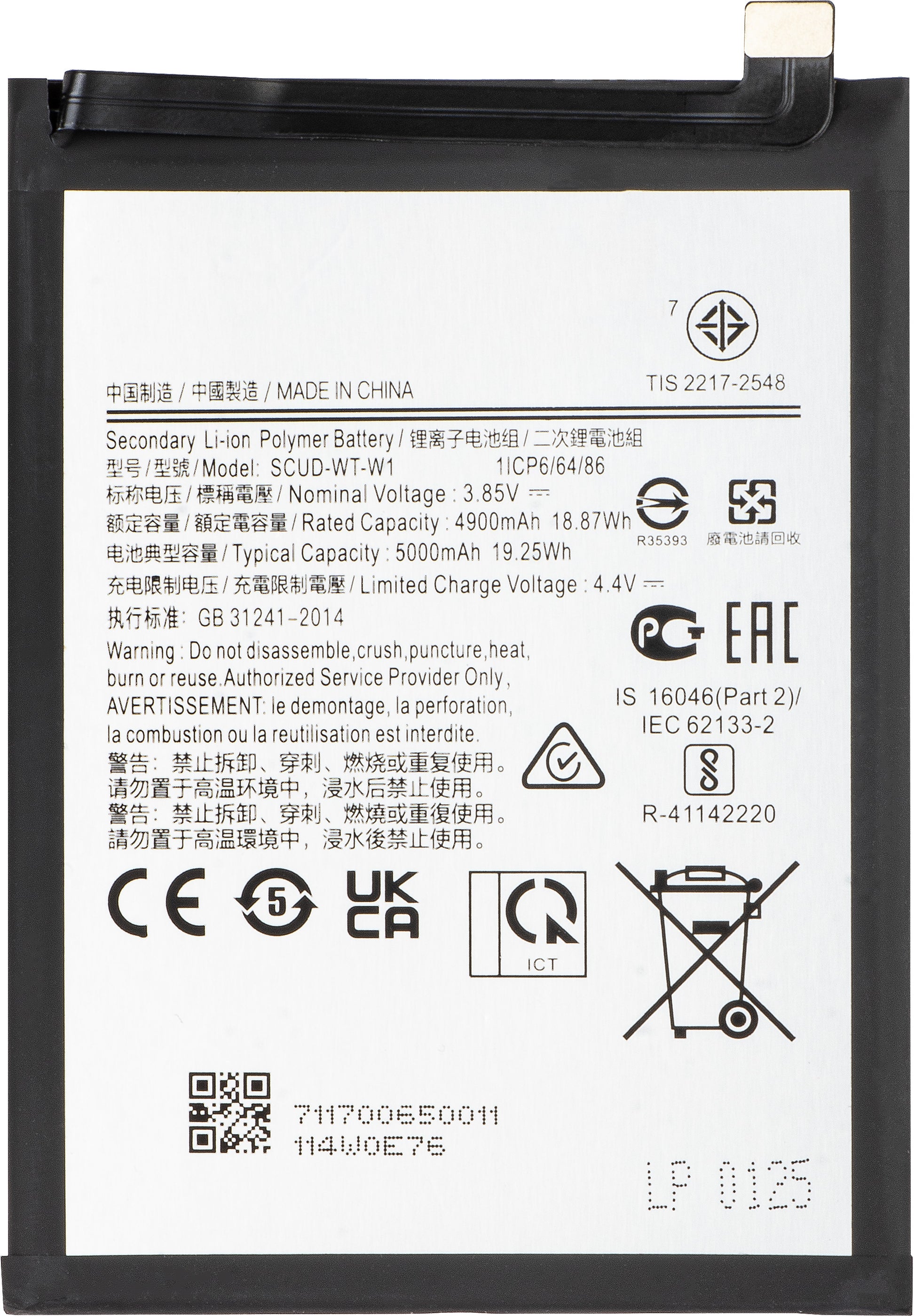 Pièce de rechange compatible, destinée au remplacement de la batterie endommagée ou usée.