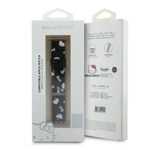Bracelet Hello Kitty Leather Kitty & Bows pour Apple Watch 42mm / 41mm / 40mm / 38mm Series, Noir
