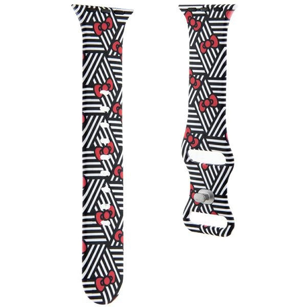 Bracelet Hello Kitty Silicone Bows & Stripes pour Apple Watch 42mm / 41mm / 40mm / 38mm Series, Noir