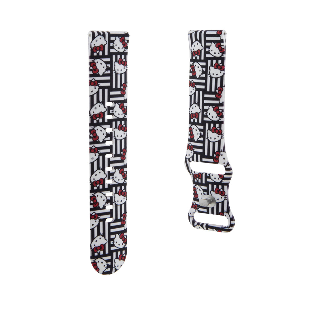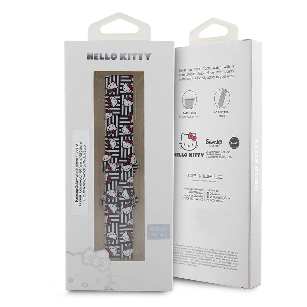 Bracelet Hello Kitty Silicone Kitty Heads & Stripes pour Samsung Galaxy Watch / Huawei Watch Series, Noir