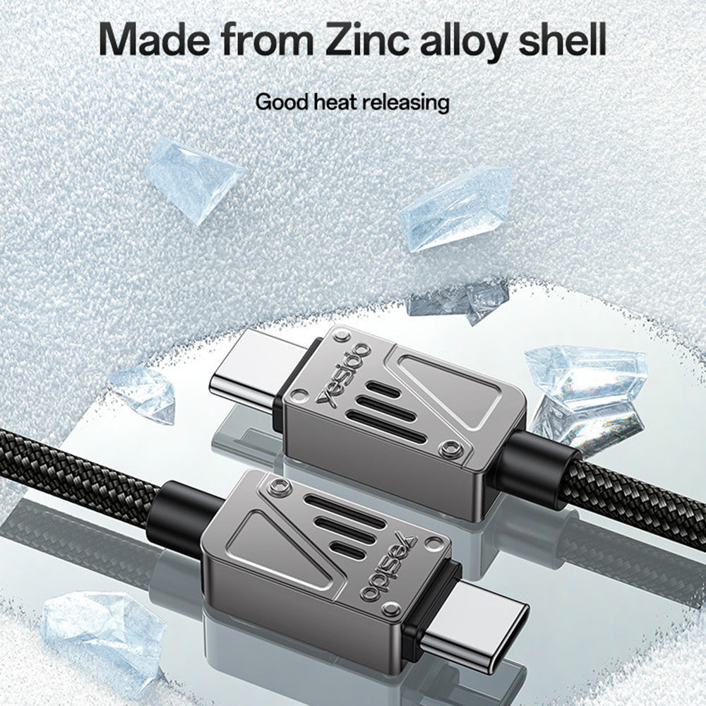 Câble de Données et de Charge USB-C - USB-C Yesido CA196, 60W, 1.2m, Noir