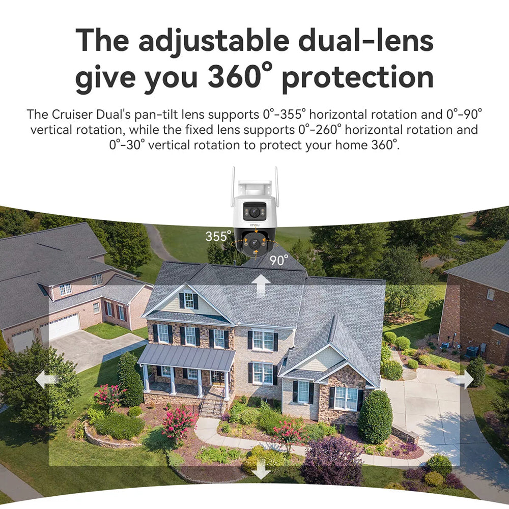 Caméra de Surveillance Imou Cruiser Dual, Wi-Fi, 2.8K + 2K, IP66, Extérieur, Blanche IPC-S7XP-8M0WED-0360B