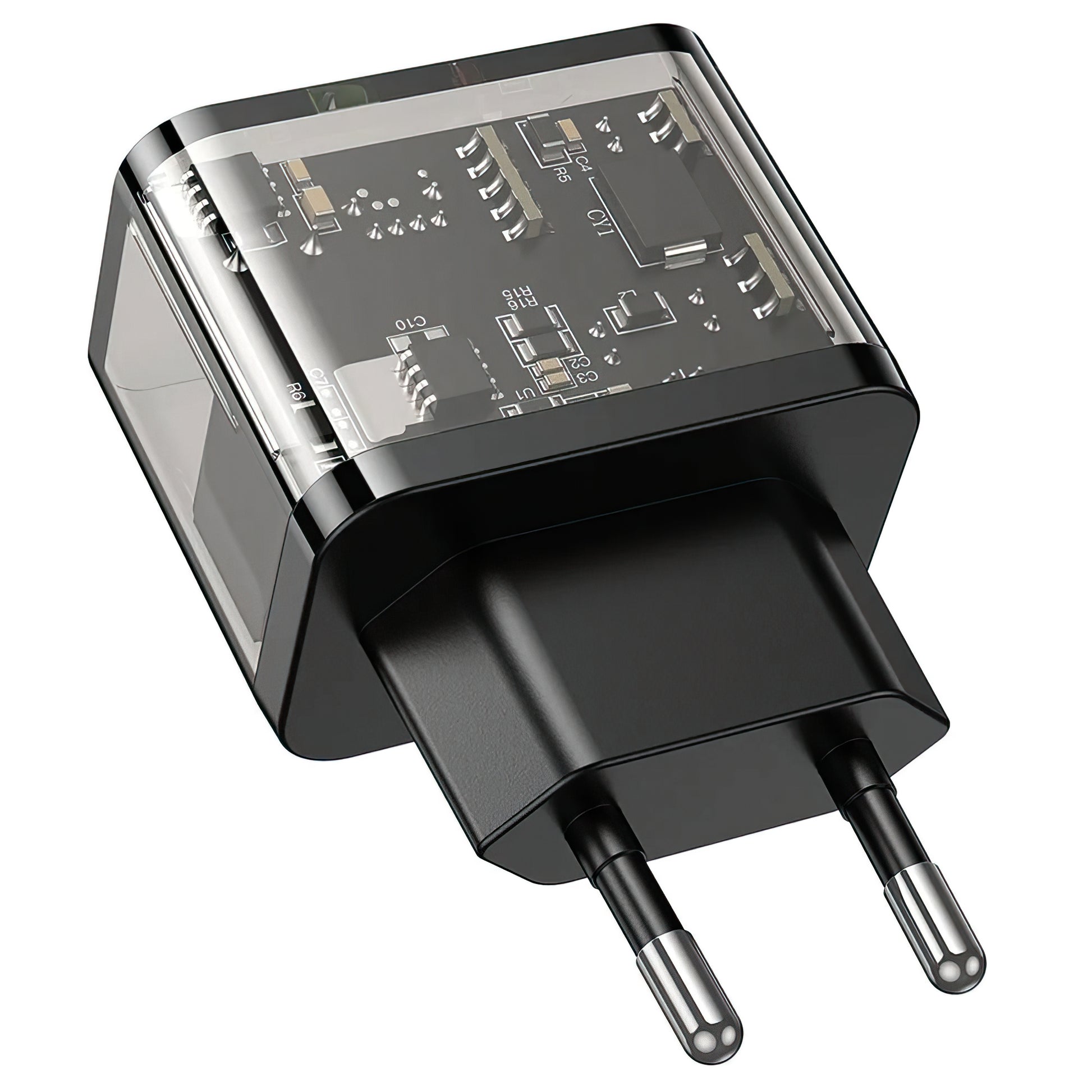 Chargeur Réseau HOCO N34, 20W, 3A, 1 x USB-A - 1 x USB-C, Transparent
