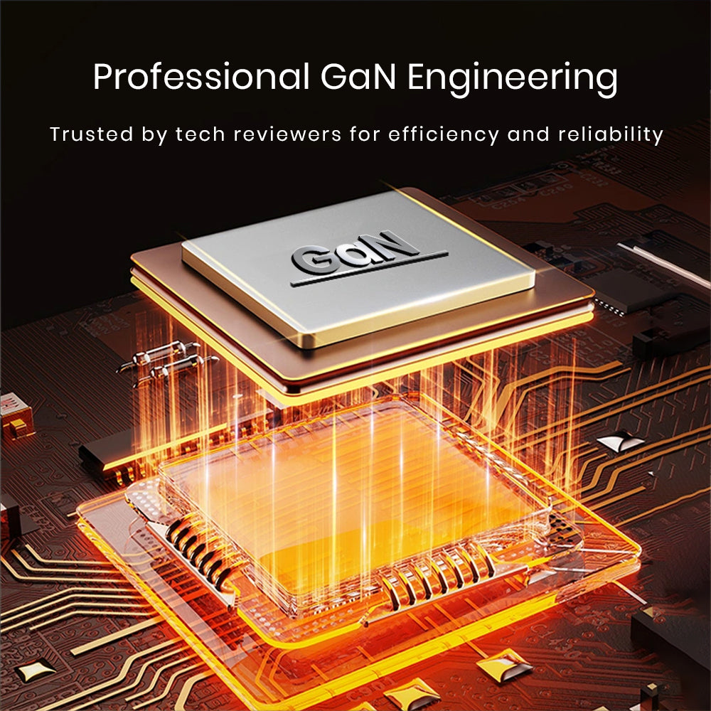 • Pourquoi choisir ce chargeur ? Parce qu'il est plus compact, plus sûr et plus efficace. Équipé de la technologie GaN, il offre des protections contre la surchauffe, la surcharge et les courts-circuits.
