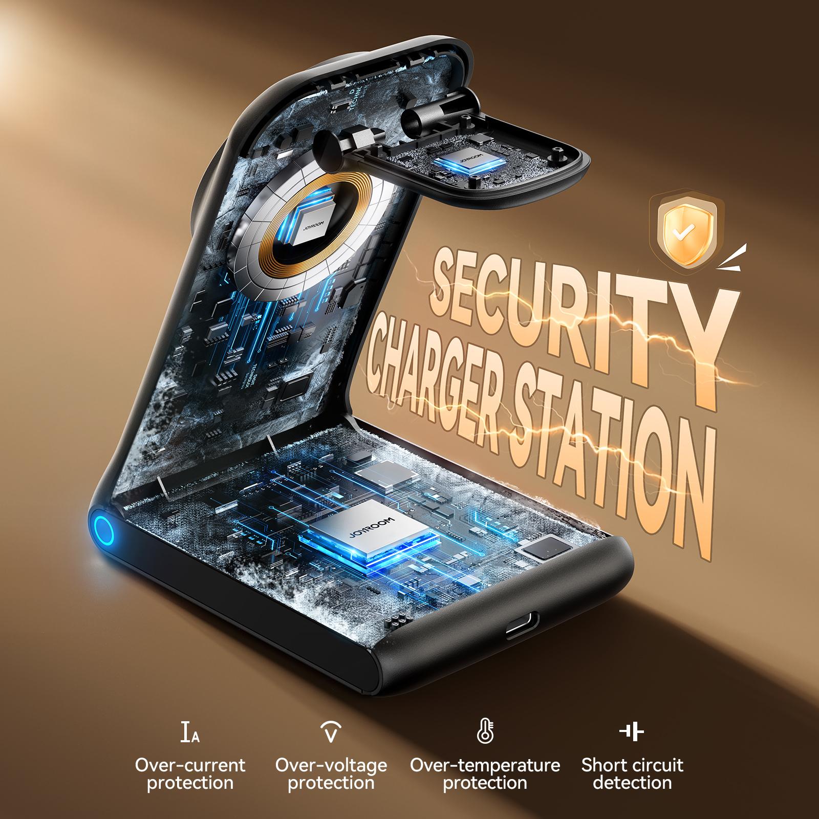 Libérez-vous des câbles emmêlés et profitez de la charge sans fil avec Joyroom JR-W15, une station 3-en-1 idéale pour le bureau ou la maison.