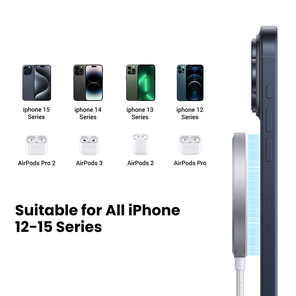 Compact et léger, l'UGREEN W703 est parfait tant pour l'utilisation quotidienne que pour les voyages, étant compatible avec l'iPhone 12 jusqu'à l'iPhone 16,