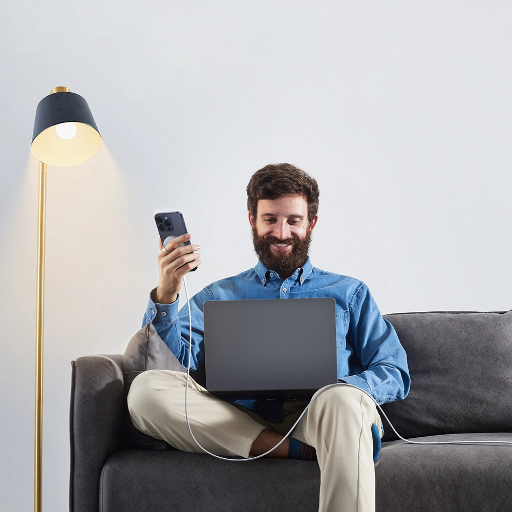 sans câbles supplémentaires. Il est équipé d'un câble USB-C intégré, long de 1.5 mètres, avec protection textile contre l'usure et les enchevêtrements.