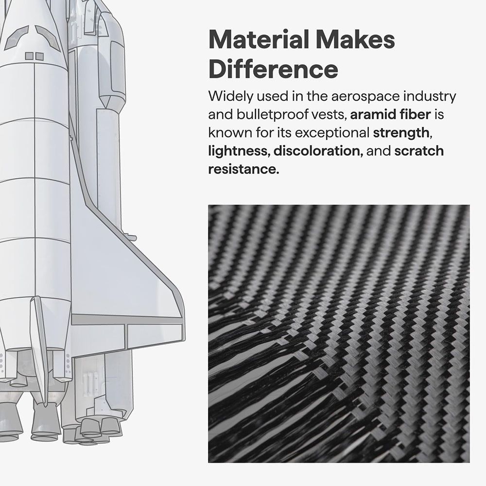 Le cadre subtilement surélevé combiné à la fibre d'aramide reconnue pour sa résistance supérieure sont des atouts précieux contre les détériorations.
