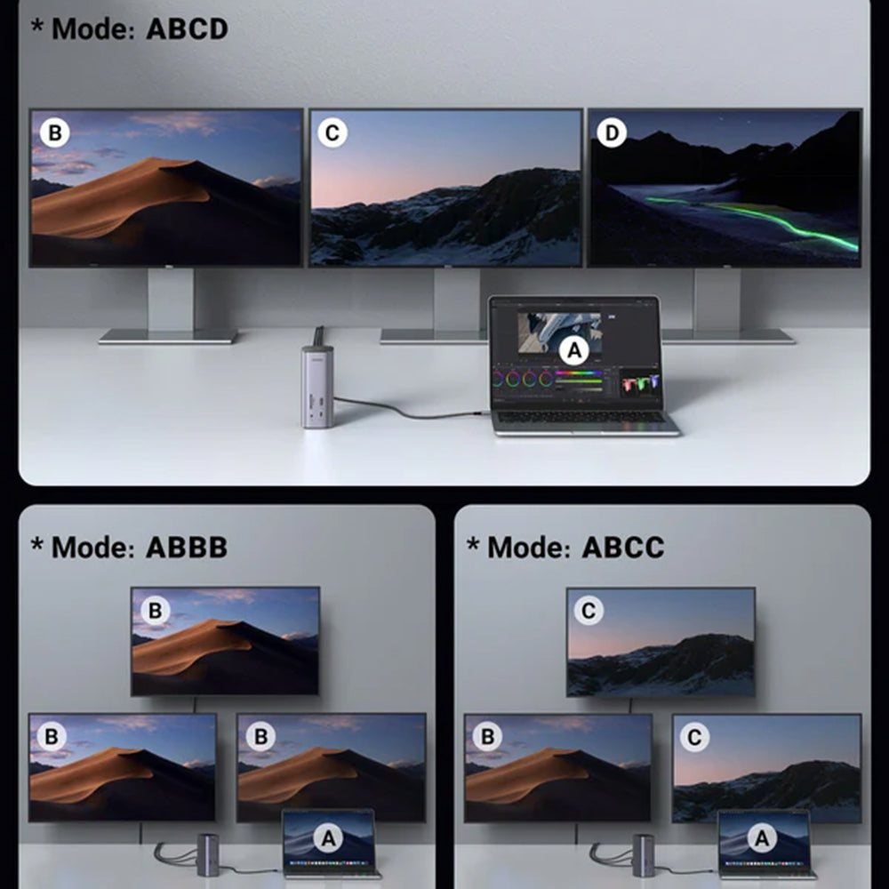 Le hub UGREEN Pro CM555 transforme tout ordinateur portable en une station de travail complète, offrant 12 ports pour la vidéo, les données, le réseau et la charge.