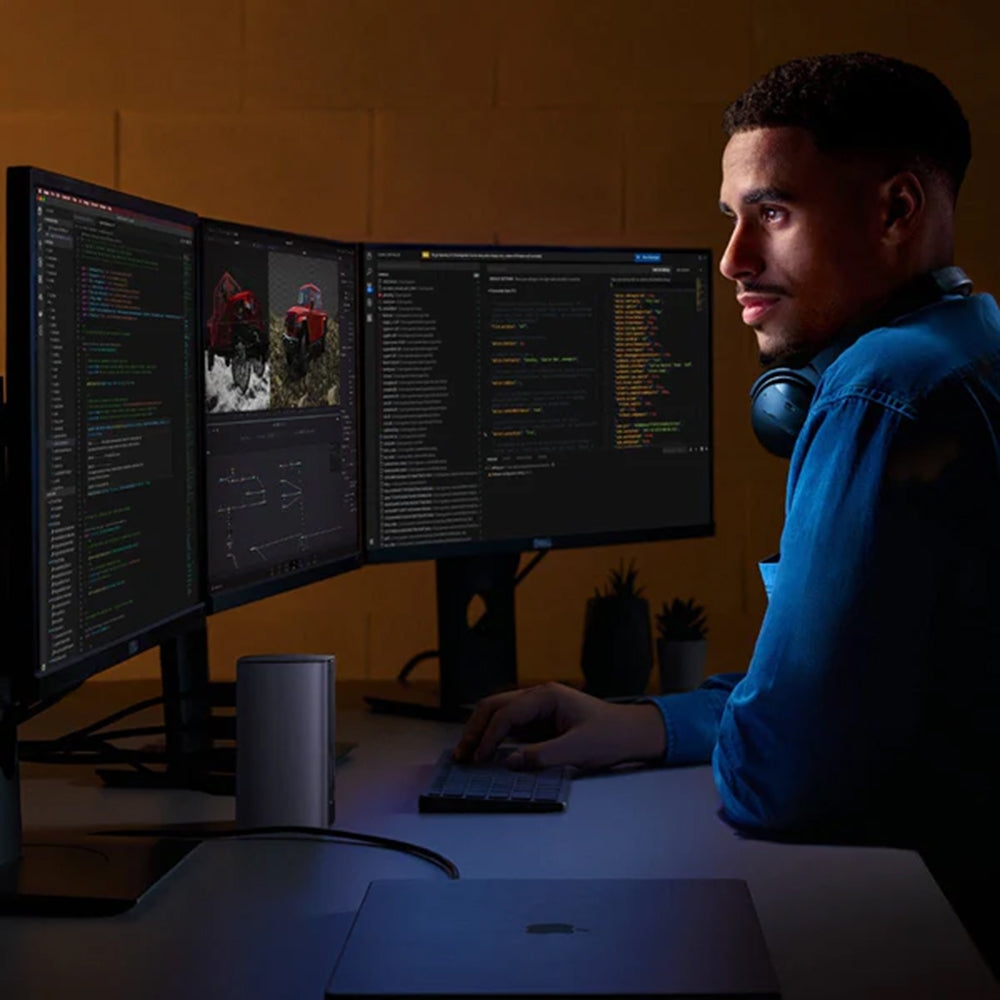 Fabriqué en aluminium premium, il combine élégance et durabilité. Il dispose de 3 sorties vidéo (HDMI 2.1 8K, HDMI 2.0 4K, DisplayPort 1.2 4K),