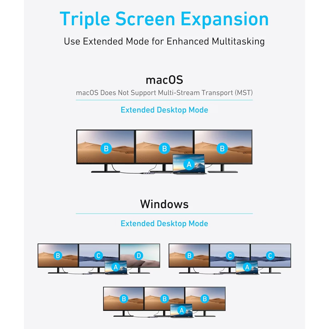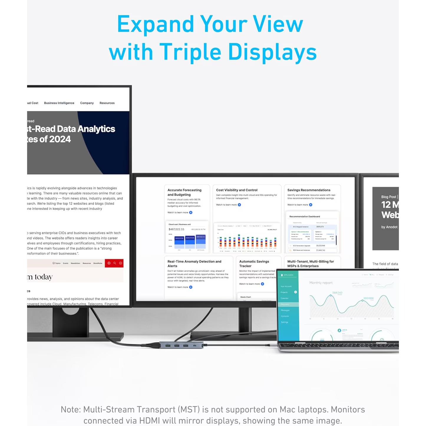 le tout dans un seul appareil compact. Il permet la connexion simultanée à jusqu'à trois moniteurs externes, des transferts rapides de fichiers via les ports USB 3.0 et