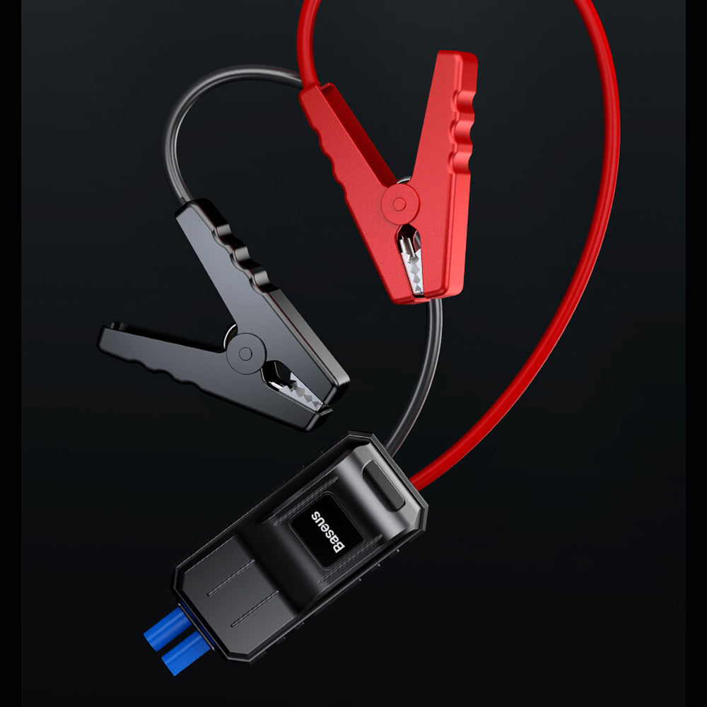 Le paquet inclut : jump starter, câble Type-C, pinces de charge.