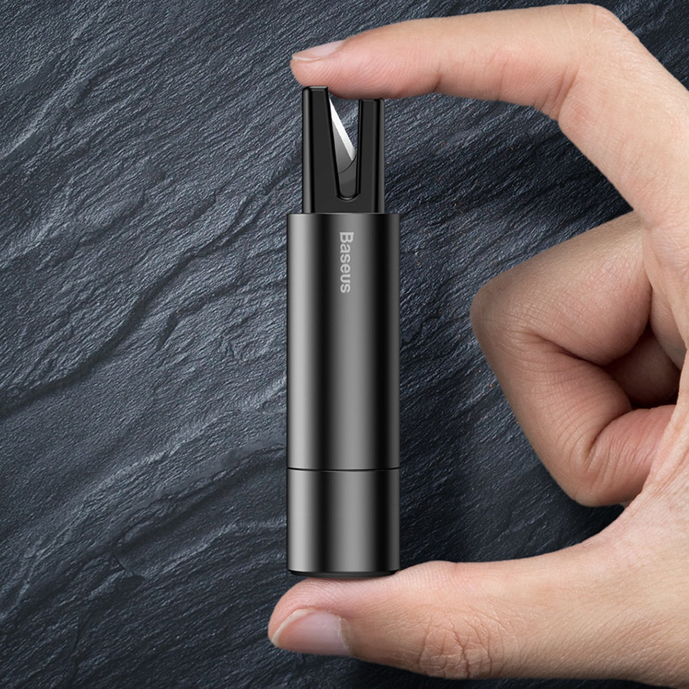 • À l'intérieur du gadget, une lame super tranchante est intégrée pour couper rapidement les ceintures de sécurité en cas d'accident.