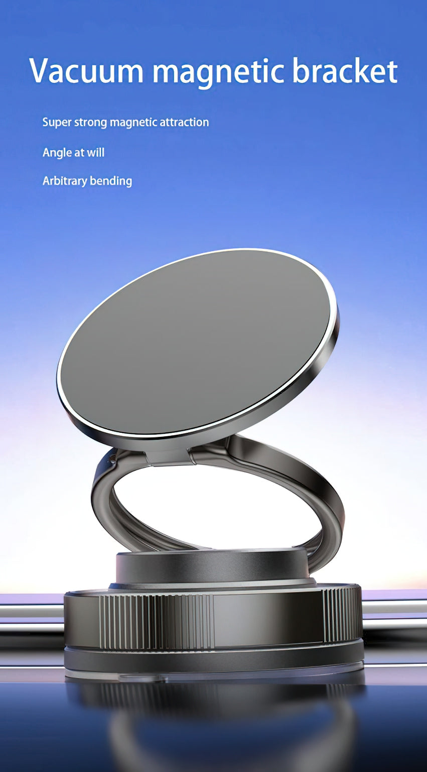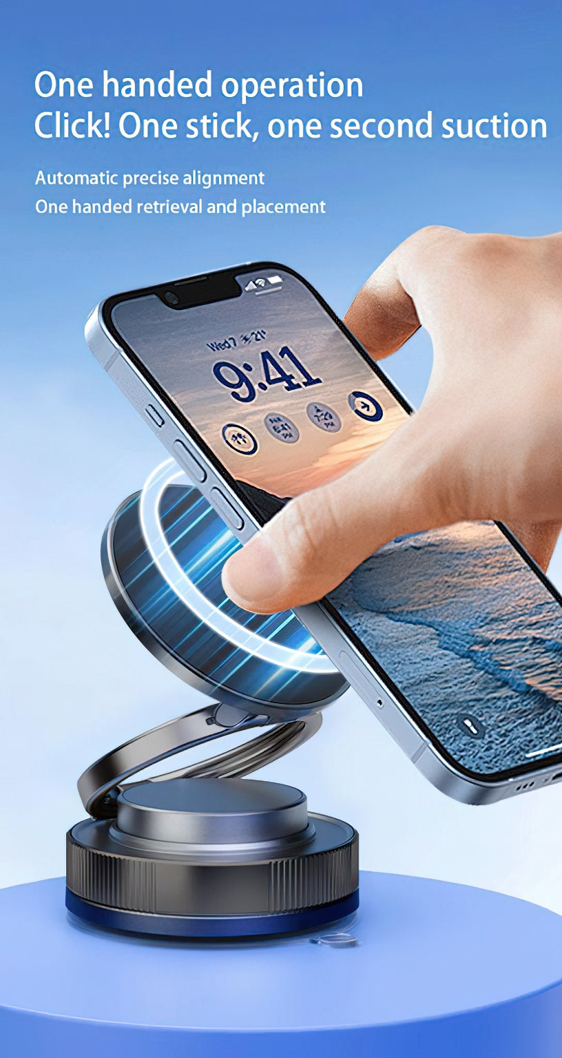 la conduite ou au bureau. Grâce au système vacuum-magnétique innovant, le support utilise un mécanisme de verrouillage par glissement, ce qui