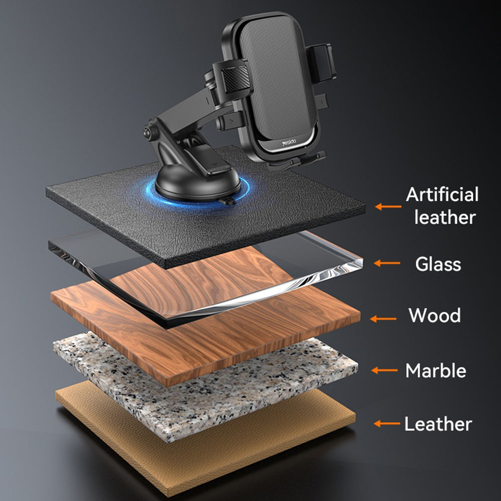 Grâce au système de fixation gravitationnel à trois points et à la ventouse à forte adhérence, le support maintient le téléphone stable, même sur les routes les plus accidentées.